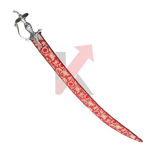 Damascus Steel Tegh Sword With Brocade Cloth Sheath