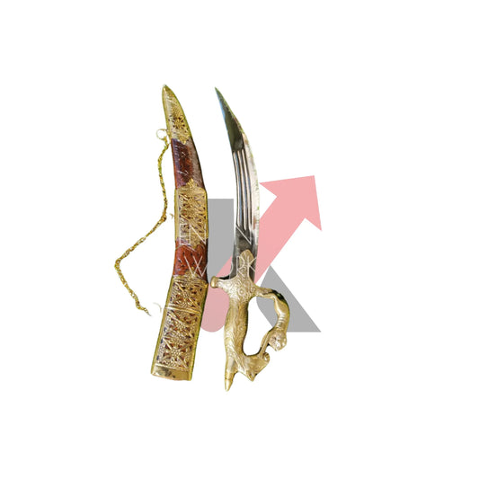 Groom Tega Indian Wedding Sword – Handcrafted Groom Talwar with Brass & Velvet Scabbard