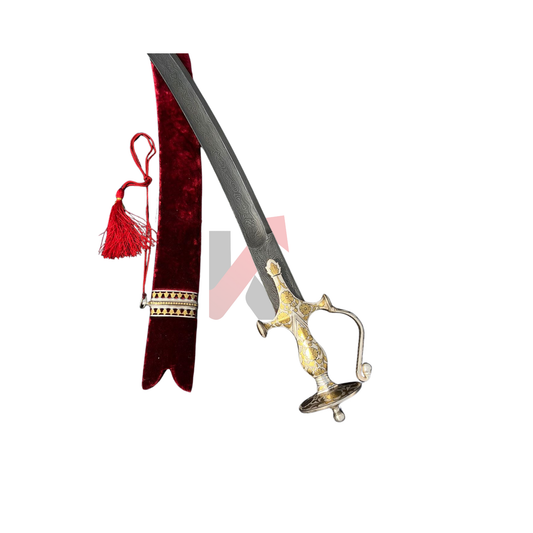 Damascus Steel Tegh Sword With Brocade Cloth Sheath