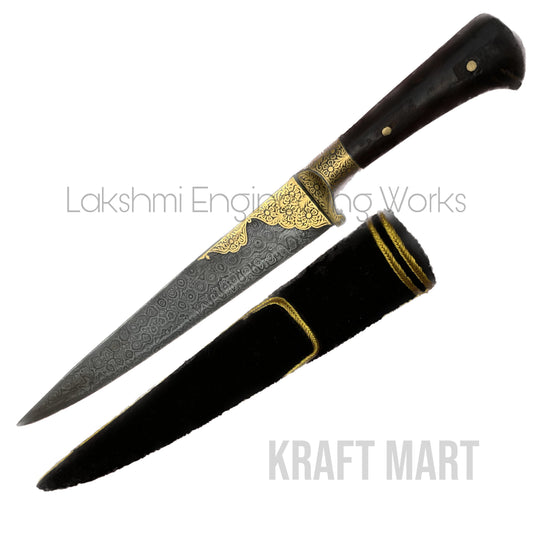 Authentic Dagger Gold Koftgiri Wire Work . Length- 12.5inches , 13.5 inches with scabbard . Width- 1 inch, 2 inches with scabbard . Blade Material- Damascus...