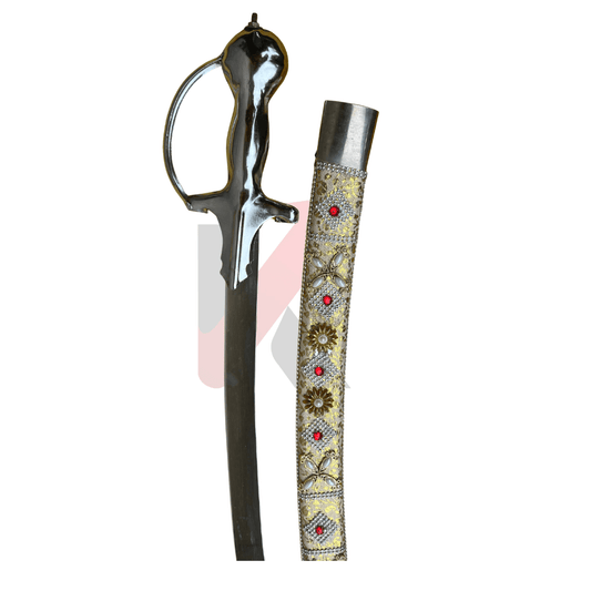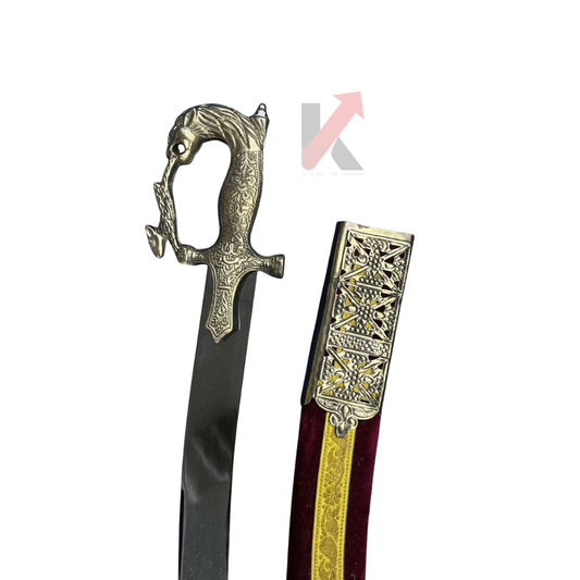 Traditional Dulha Talwar with Red Brocade Sheath – Handcrafted Tegha